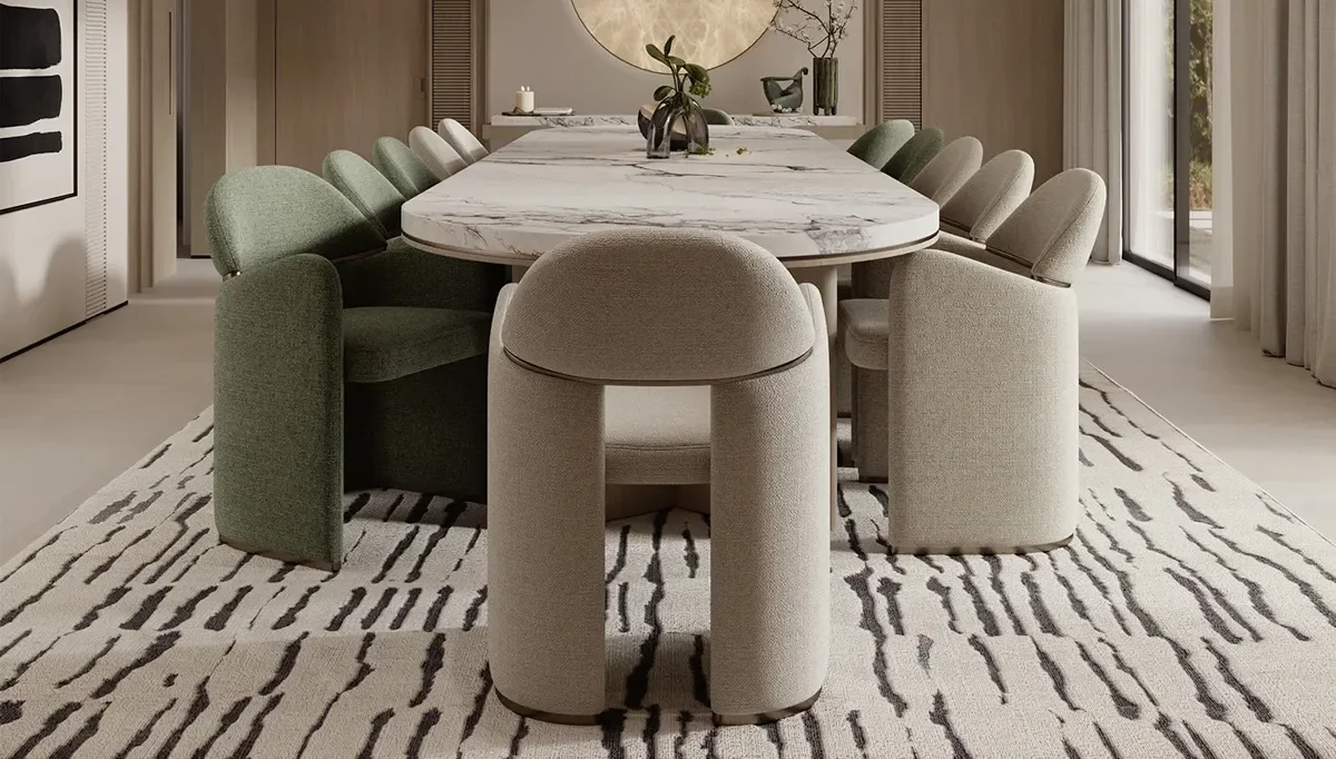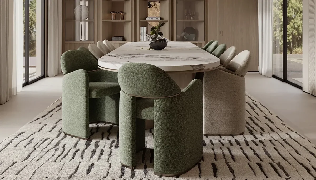 Özellikle İtalyan tasarımı çizgileriyle öne çıkan yemek masalarımız, sofistike detayları ve zamansız şıklığıyla modern dekorasyon anlayışına mükemmel uyum sağlıyor. Yuvarlak masa seçeneklerimiz, samimi ve keyifli sohbetlerin odak noktası olurken, mermer desenli yüzeyler ise mekâna lüks bir dokunuş katıyor.