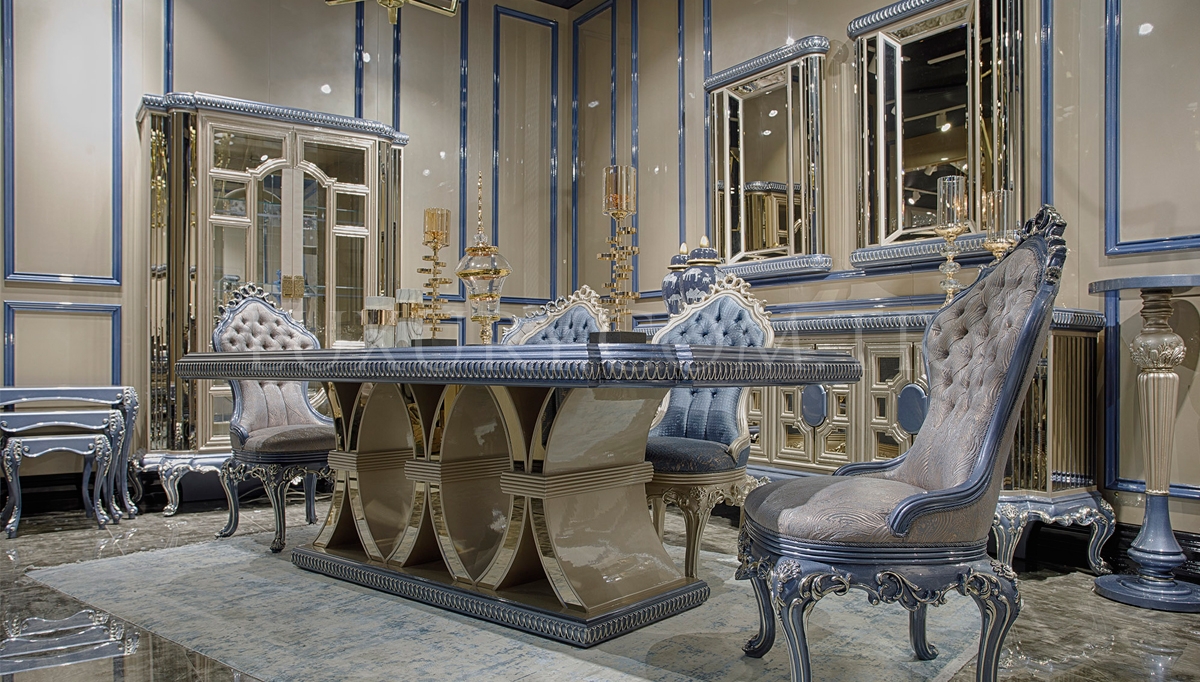 Lüks Austin Klasik Yemek Odası, zamansız tasarımı ve detaylara verilen önem ile yemek alanınızda sofistike bir atmosfer yaratır. Geniş yemek masası, aile yemeklerinden özel davetlere kadar her anınıza kusursuz bir eşlik sunarken, ergonomik ve şık sandalyeleri uzun süreli konfor sağlar. El işçiliği detayları ve ince oymaları, bu takımın estetik değerini zirveye taşır. Austin Yemek Odası, prestijli bir dekorasyon arayanların vazgeçilmezi olacak.