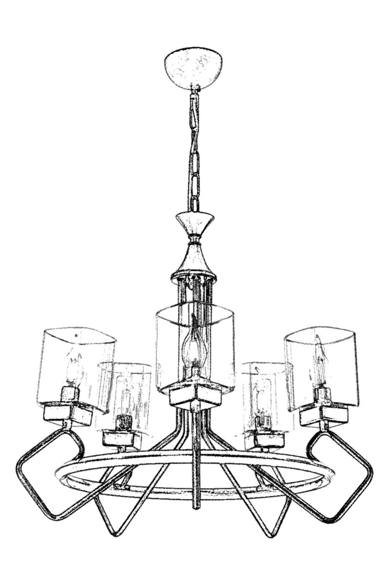 Ürün Adı : Luxury AV-60135-5E Eskitme Kaplama Modern Avize E14 Metal Cam 60cm
