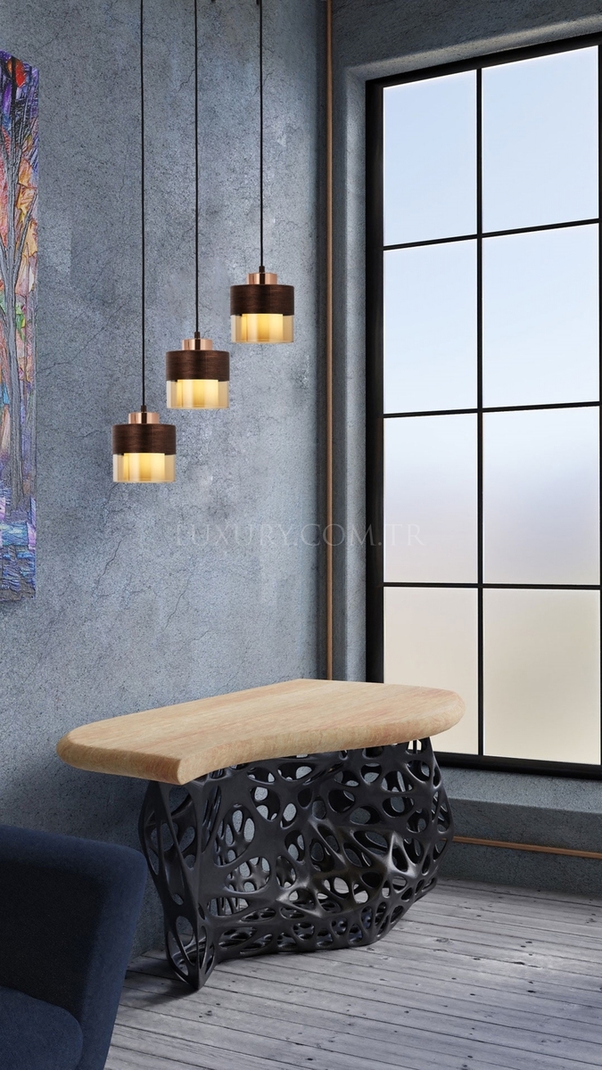 Luxury AV-60193-3Y-CPR Bakır Patina Boyalı Modern Avize E27 Metal Cam 70x15cm
