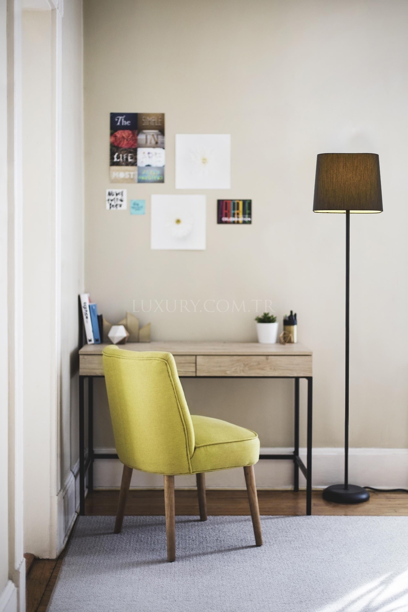 Ürün Adı : Luxury HLM-9071-1BS Siyah Boyalı Lambader E27 Metal Kumaş 37x37cm