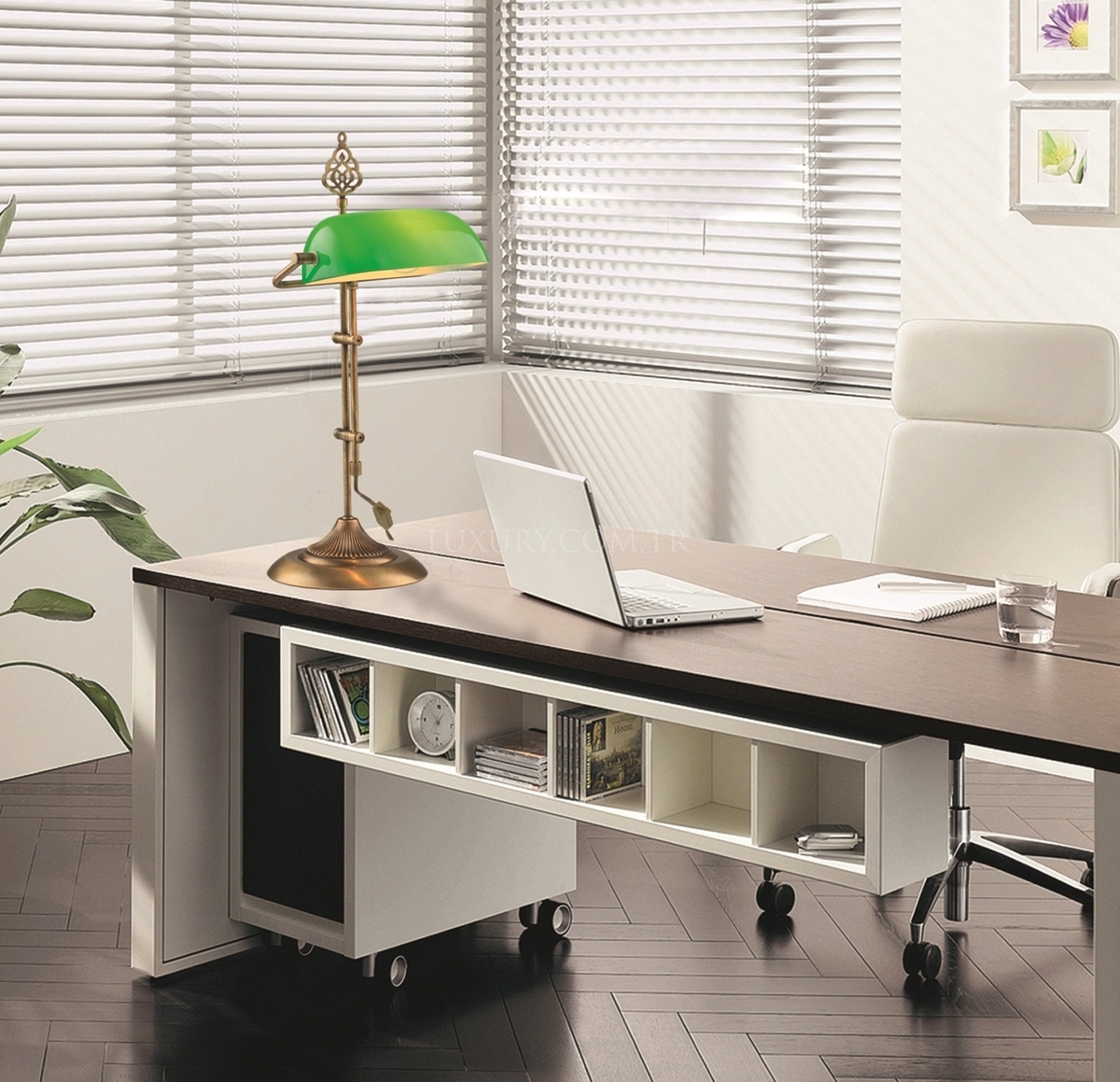 Luxury ML-9063-GREEN Eskitme Kaplama Masa Lambası E27 Metal Cam 30x20cm