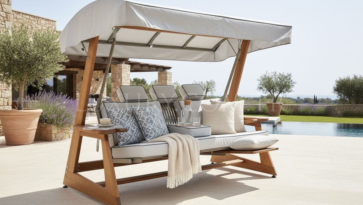 Bakımı UV Işınlarına dayanıklı, Su itici özelliğe sahip, kolay temizlenebilir, paslanmaz çelik aksesuarlar kullanılmıştır.