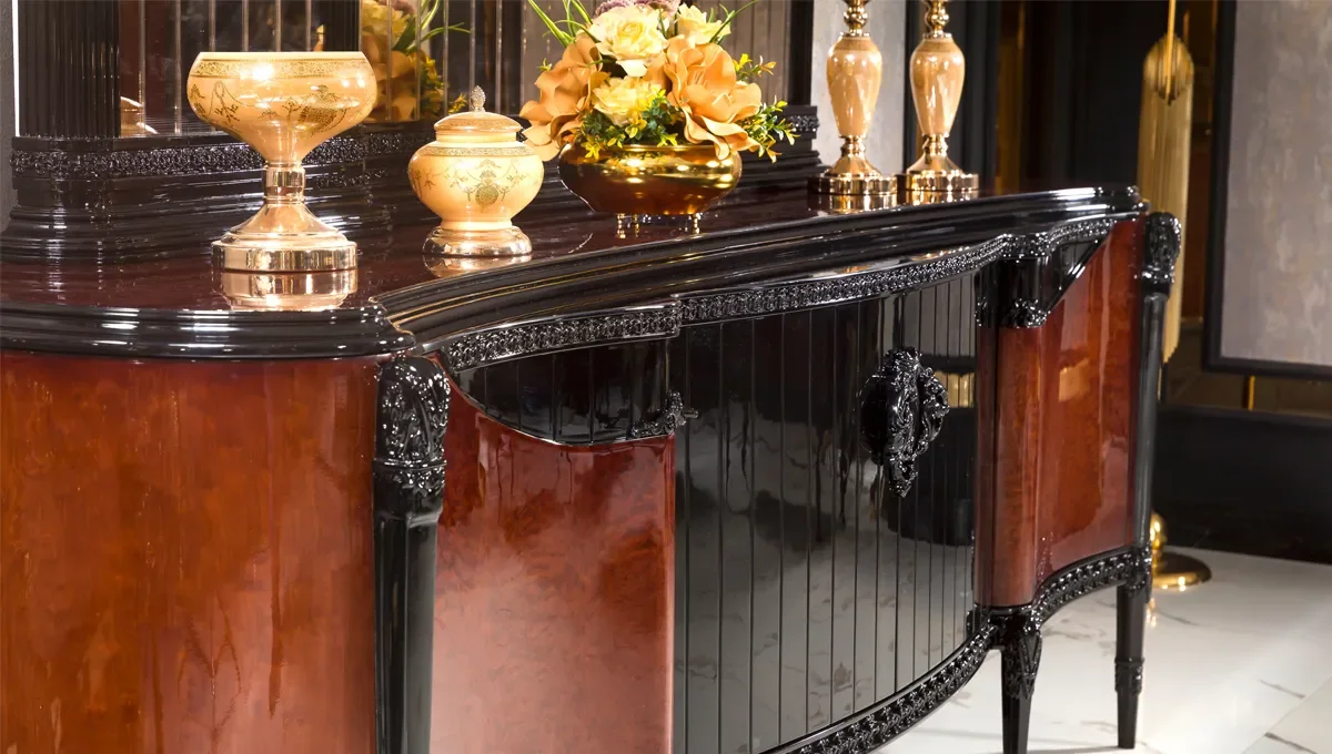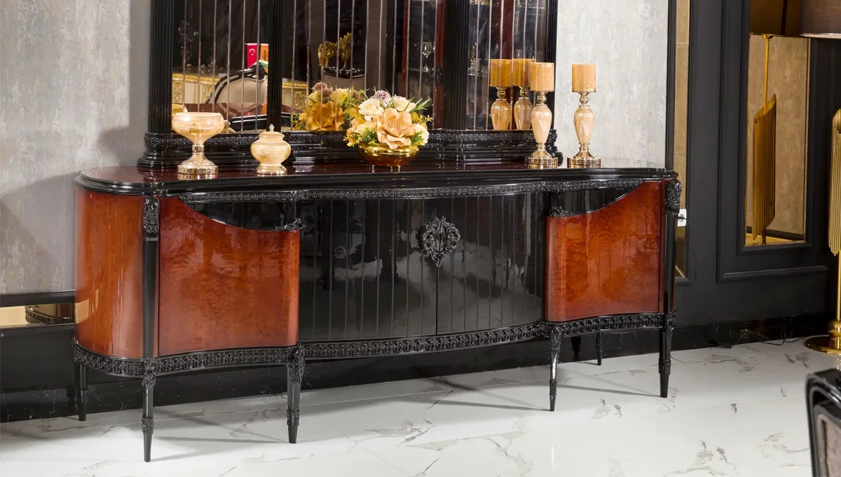 Geniş yemek masası, zarif çizgilere sahip sandalyeleri ve ihtişamlı konsolu ile evinizde kusursuz bir uyum oluşturur. Casa serisi, 2026 mobilya modelleri yemek odası koleksiyonu arasında öne çıkan, lüks ve konforu bir araya getiren yapısıyla dikkat çeker. Tasarımında kullanılan özel dokular, İtalyan klasik mobilya estetiğinden ilham alarak seçilmiştir. Bu sayede her parça, hem geçmişin zarafetini hem de günümüzün modern çizgilerini harmanlar.