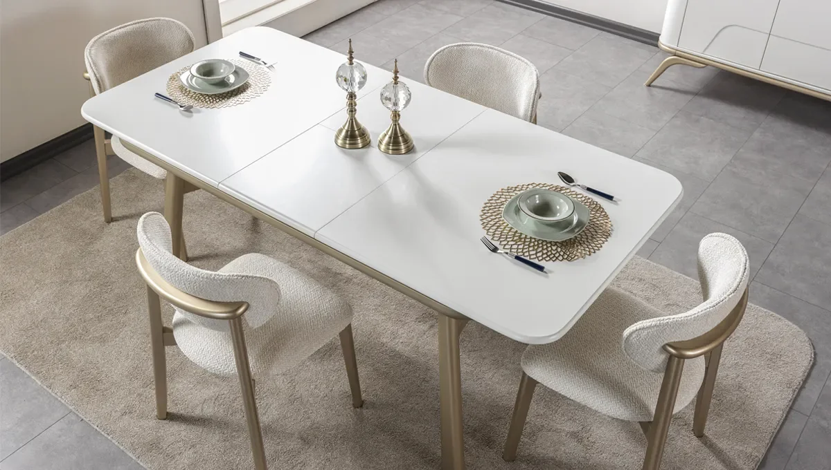 Florim Modern Yemek Odası, minimalist detayları ve modern çizgileriyle yaşam alanlarınıza estetik bir dokunuş katıyor. Şık yemek masası ve konforlu sandalyeleri, hem günlük kullanıma hem de özel davetlere mükemmel uyum sağlıyor. Kaliteli malzemeleri ve zarif tasarımıyla, yemek saatlerini daha keyifli ve daha prestijli hale getiriyor. Florim, modern ve fonksiyonel bir yemek odası arayanlar için ideal bir seçim!