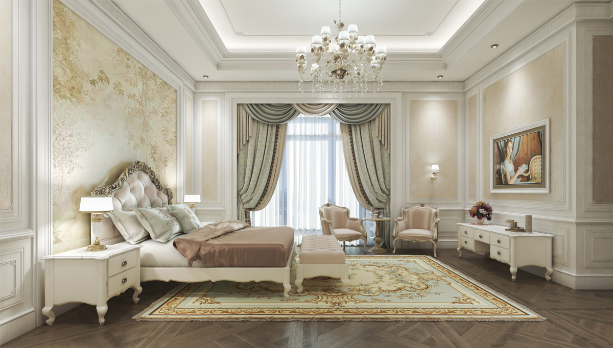 Geniş metrekarelere sahip yaşam alanında, özel üretim villa koltuk takımı ve şık aksesuarlarla zenginleştirilmiş bir villa salon modeli tasarlandı. Yatak odalarında konforlu ve lüks bir atmosfer sunan villa yatak odası mobilyaları tercih edildi.