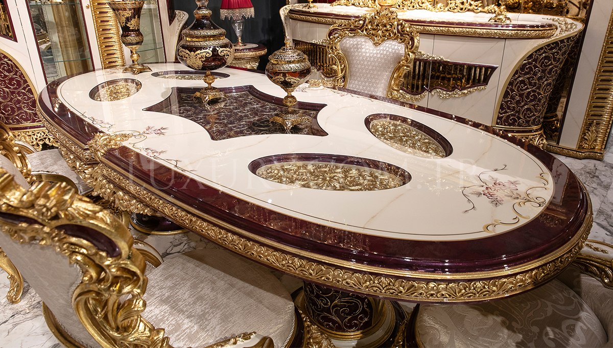 | Takım İçeriği | Konsol ve Aynası, Yemek Masası, 6 Adet Sandalye'den oluşmaktadır. Vitrin ve TV Ünitesi Fiyata dahil değildir.Opsiyonel olarak satışa sunulmaktadır. |