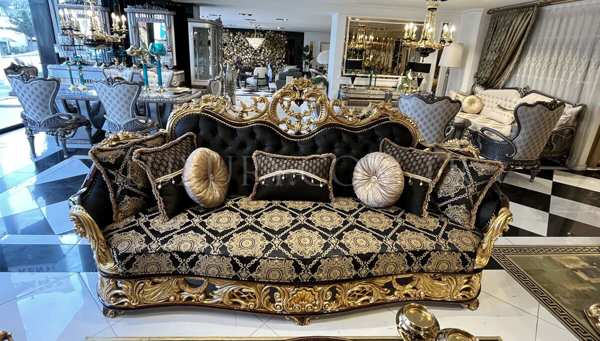 Роскошный классический гарнитур с изысканной ручной работой. Чёрный и золотой — символы величия и стиля.