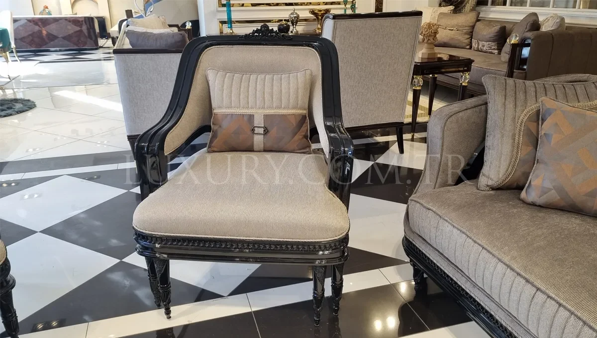 Zamansız şıklığın modern çizgilerle buluştuğu Loren Koltuk Takımı, klasik mobilya estetiğini günümüz dokunuşlarıyla yeniden yorumlayan özel bir tasarım serisidir. El işçiliğiyle hazırlanan kahverengi ahşap kaplama detayları; gri ve krem tonlarının sofistike uyumuyla birleşerek mekâna sıcak, dengeli ve lüks bir görünüm kazandırır.