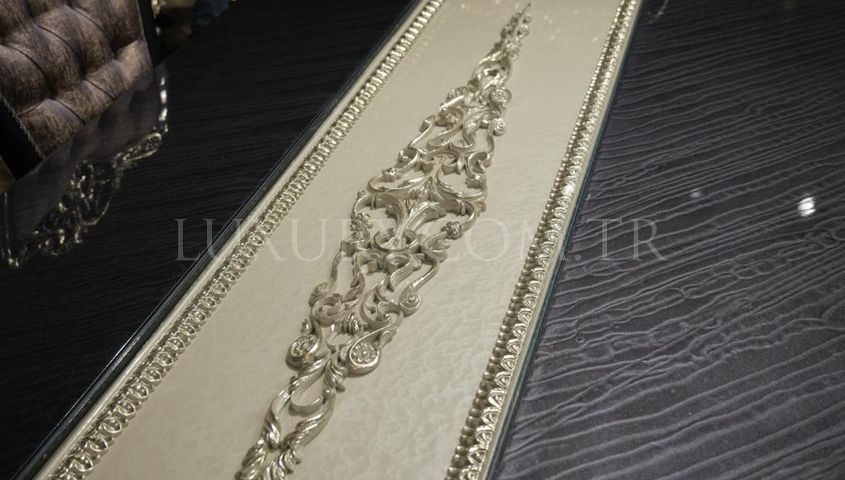 | Takım İçeriği | Konsol, Yemek Masası, 6 Adet Sandalye'den oluşmaktadır. TV Ünitesi, Vitrin ve dresuar fiyata dahil değildir. Opsiyonel olarak satışa sunulmuştur. |