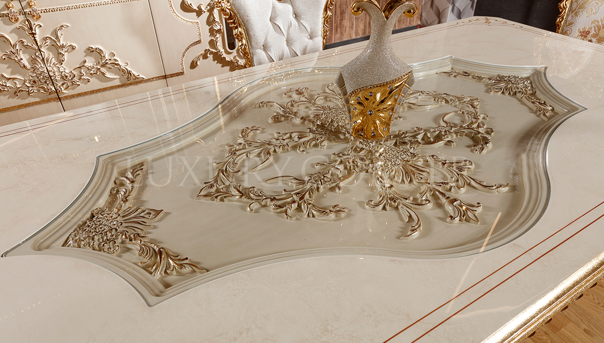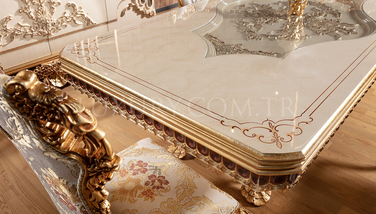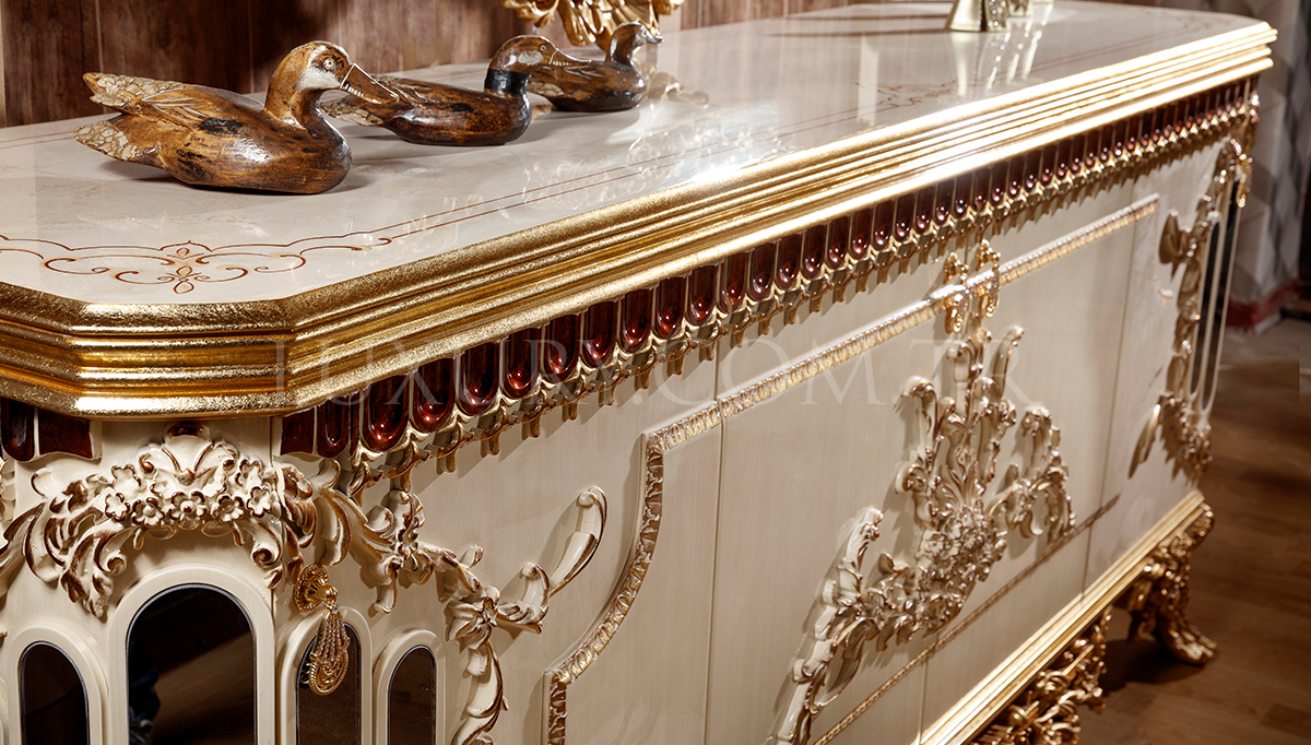 | Takım İçeriği | Konsol ve Aynası, Yemek Masası, 6 Adet Sandalye'den oluşmaktadır. Vitrin Fiyata dahil değildir.Opsiyonel olarak satışa sunulmaktadır. |