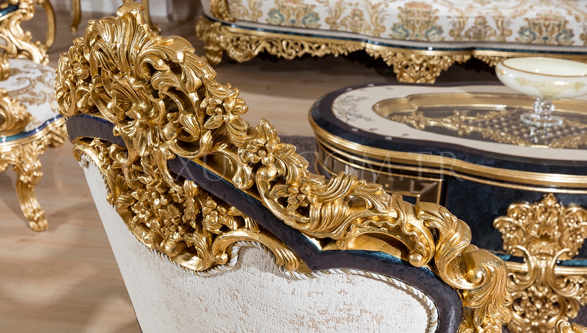 Lüks Dubai Klasik Koltuk Takımı, klasik tasarımın ihtişamını modern detaylarla buluşturarak salonlarınıza lüks ve zarafet katar. Kaliteli kumaşı ve özenli işçiliğiyle hem estetik hem de konforlu bir oturum sunar. Zarif süslemeleri ve dayanıklı yapısıyla klasik mobilya severler için ideal olan bu takım, uzun ömürlü kullanım avantajı sağlar. Lüks Dubai Klasik Koltuk Takımı, Luxury Line Mobilya ile evinizde prestijli ve şık bir yaşam alanı oluşturmanızı sağlar.