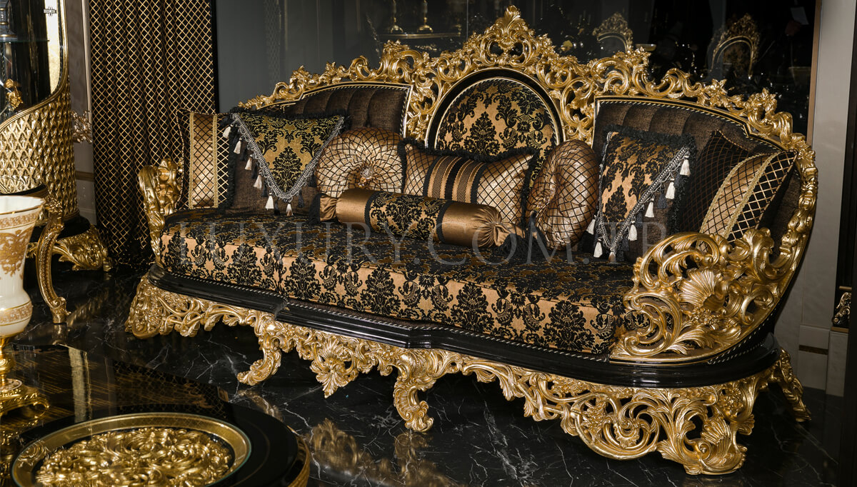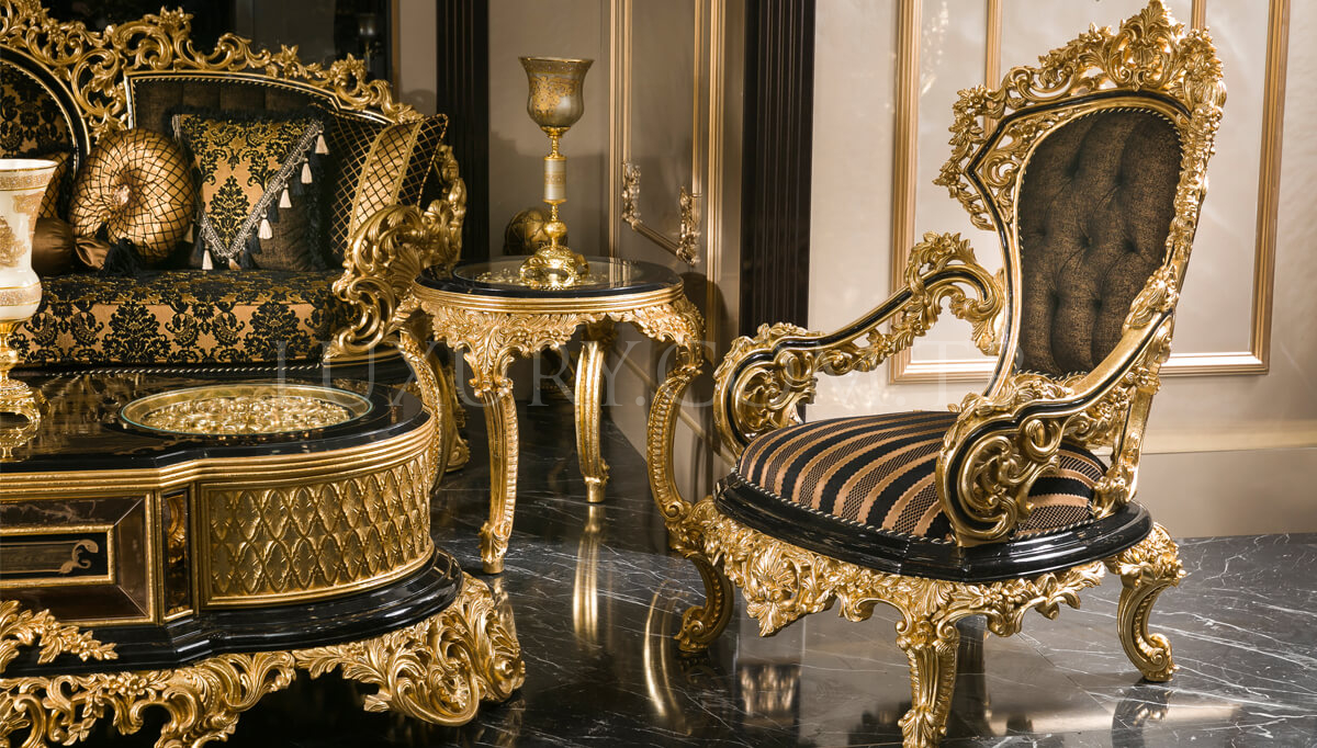 Hazar Siyah ve Altın Klasik Koltuk Takımı: Zarafetin ve İhtişamın Buluşması