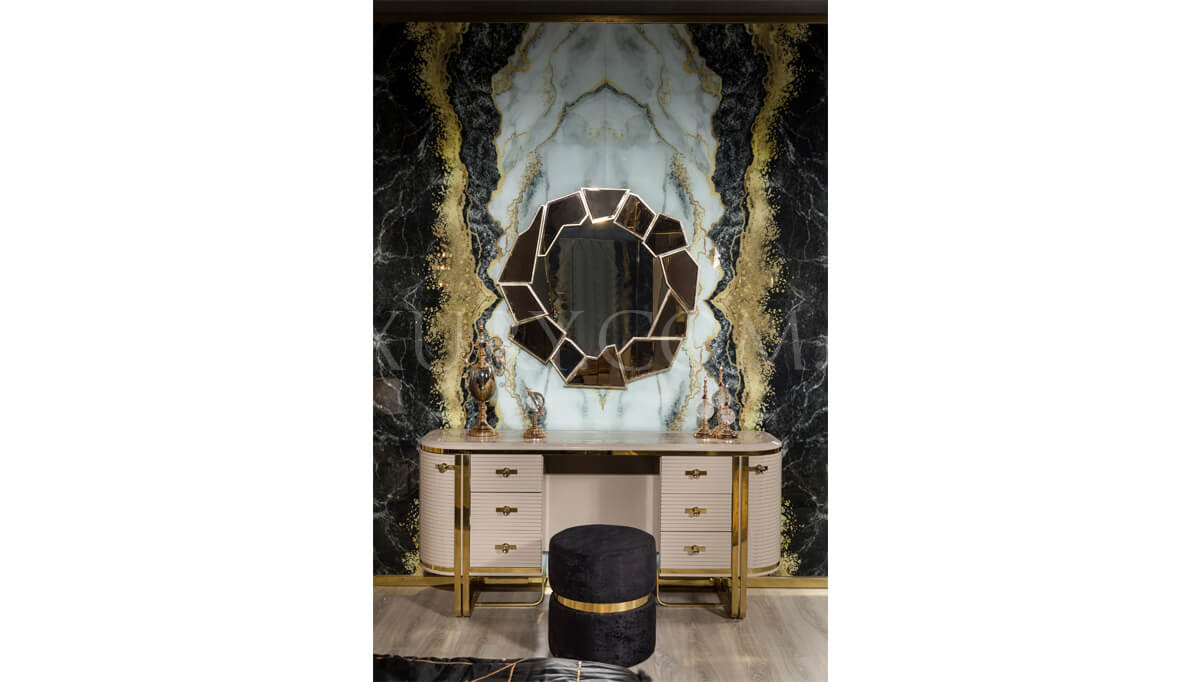 | Takım İçeriği | Dolap, Karyola, Şifonyer, Şifonyer Aynası ve 2 adet Komodin'den oluşmaktadır. Puf fiyata dahil değildir.Opsiyonel olarak satışa sunulmaktadır. | |