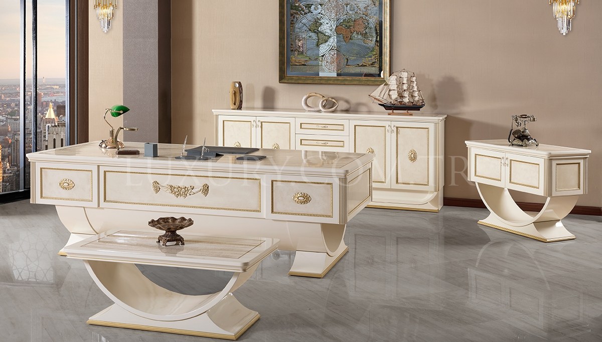 | Takım İçeriği: | Masa, konsol, etajer, orta sehpa takım olarak satılmaktadır. Parça satışı yoktur. 1 adet makam koltuğu ve 2 adet berjerden (suni deri) fiyata dahil olup isteğe bağlı tercih edilebilir. |