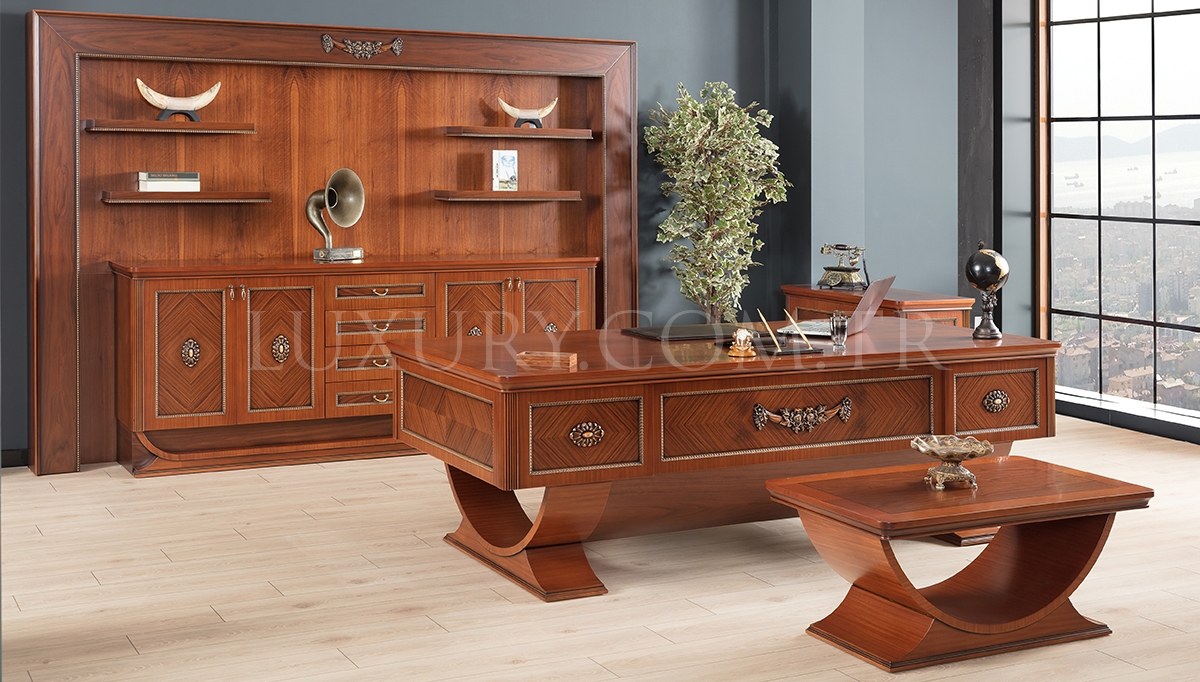 | Takım İçeriği: | Masa, konsol, etajer, orta sehpa takım olarak satılmaktadır. Parça satışı yoktur. 1 adet makam koltuğu ve 2 adet berjerden (suni deri) fiyata dahil olup isteğe bağlı tercih edilebilir. Üçlü chester koltuk opsiyonel olarak satışa sunulmuştur. |