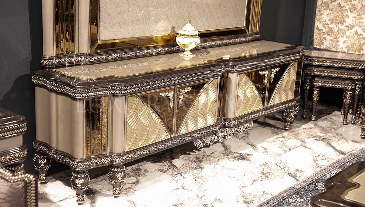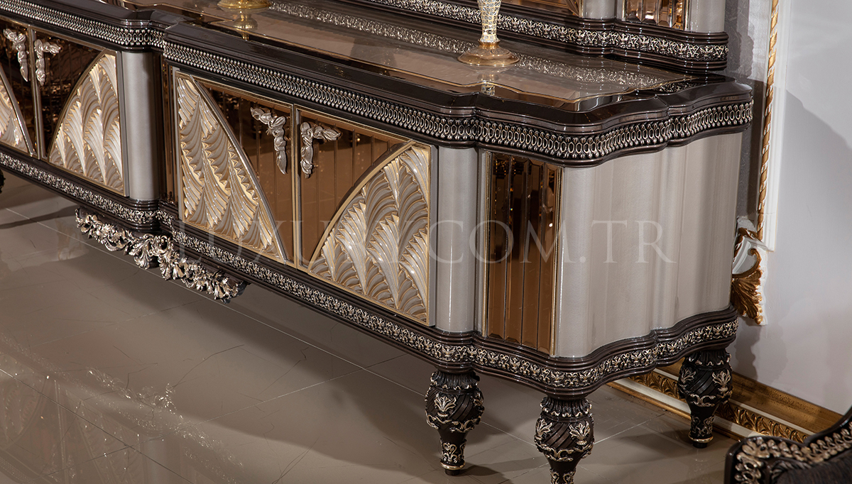 | Takım İçeriği | Konsol ve aynası, Yemek Masası, 6 Adet Sandalye'den oluşmaktadır. Vitrin ve TV Ünitesi fiyata dahil değildir. Opsiyonel olarak satışa sunulmuştur. | |