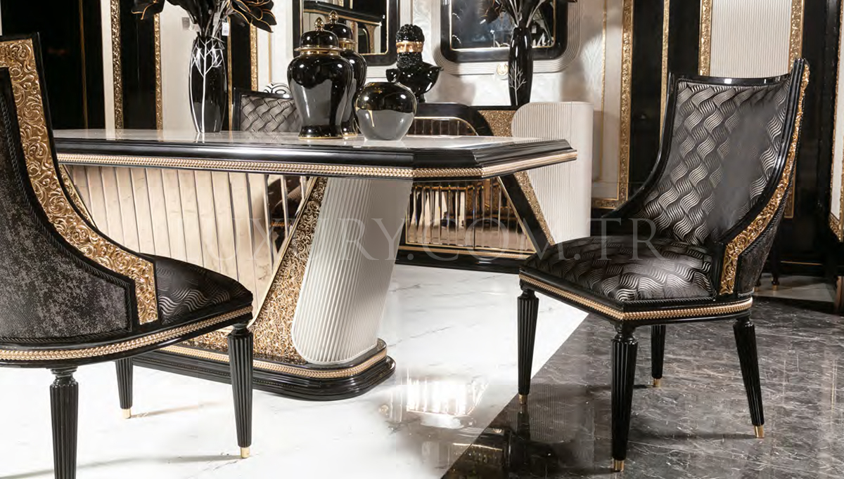 | Takım İçeriği | Konsol+Ayna, Yemek Masası, 6 Adet Sandalye'den oluşmaktadır. Vitrin, TV Ünitesi ve TV Altı Fiyata Dahil Değildir. Opsiyonel Olarak Satışa Sunulmuştur. |