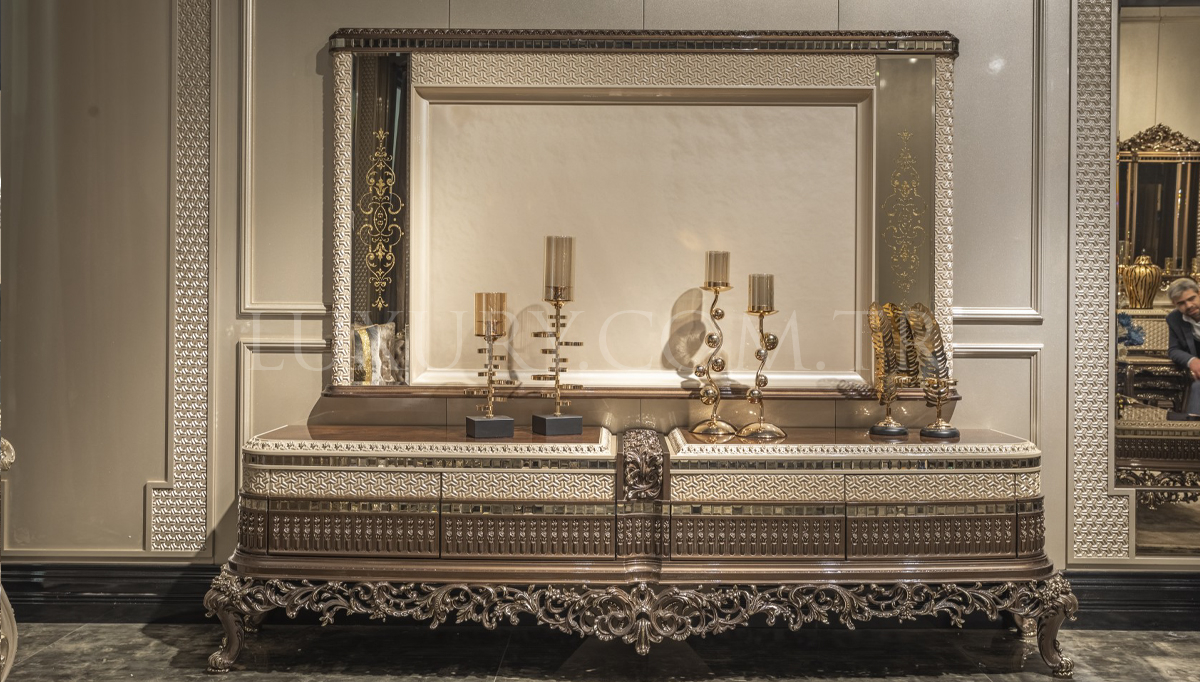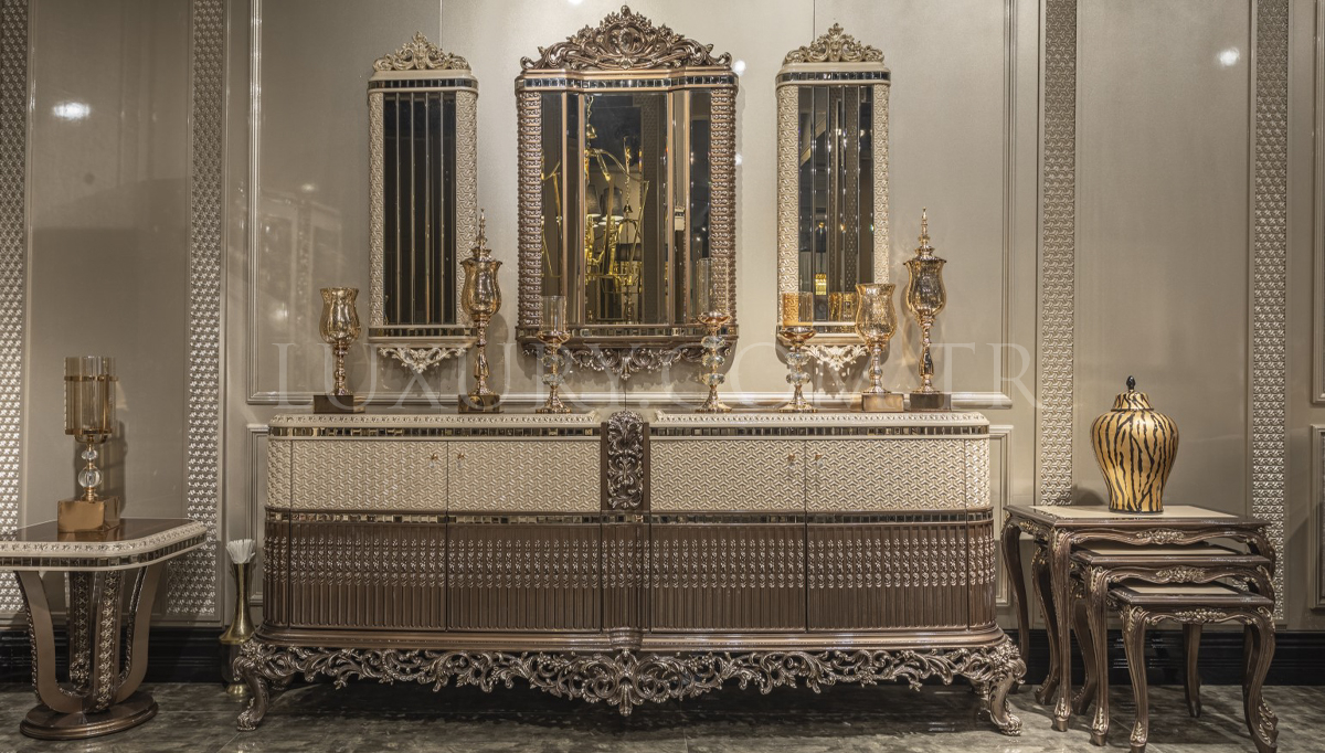Lüks Vita Klasik Yemek Odası, detaylı işçilik ve üstün estetik anlayışıyla yemek alanınıza şıklık katıyor. Zarif oyma detayları ve göz alıcı tasarımı, klasik mobilya tutkunları için ideal bir seçim sunar. Geniş masa ve konforlu sandalye tasarımı, hem aile yemeklerinde hem de özel davetlerde benzersiz bir atmosfer yaratır. Yüksek kaliteli malzemeleri, dayanıklılığı ve lüks dokusuyla yıllar boyunca prestijli bir kullanım sağlar. Vita, yemek odanızda unutulmaz anılara eşlik etmek için tasarlandı.