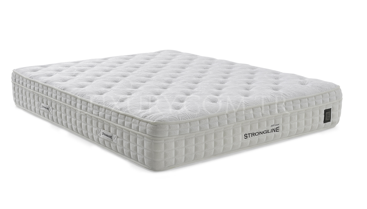 | Ürün Malzemesi | 2000 countluk ultra sert paket yayların kullanıldığı Strongline yatak ayrı ayrı paketlenmiş, bağımsız hareket eden yayların çift çekirdek etkisi sayesinde eşlerin uyku esnasında birbirlerinin istemsiz dönüş hareketlerinden etkilenmelerini önler. Sağlıklı uykunun ilk ve vazgeçilmez koşulu doğru seçilmiş, rahat ve kaliteli bir yataktır. Bu sebeple 2000 countluk Strongline sert yatak tercihi olanlar için idealdir. Özel Dokulu Örme Kumaş, 2000 Count Sert Paket Yay, Kuştüyü Sünger, Ortopedik, Anti-Bakteriyel Anti-Alerjik. |