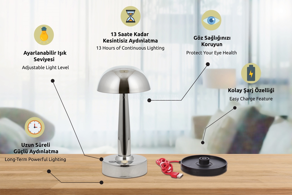 LUXURY ML-64004-K Krom Kaplama Desk Lamp LED Metal Pleksi 12cm