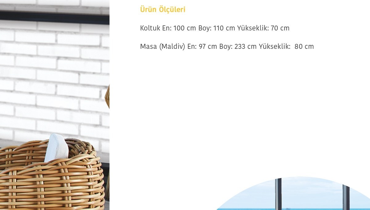 | Koltuk (6 adet) | 110 cm | 70 cm | 100 cm |