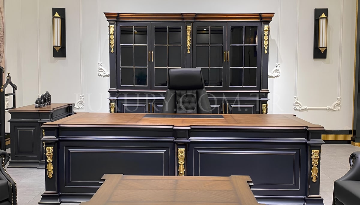 | Takım İçeriği | Ürünümüz takım olarak Masa ve Konsol' dan oluşmaktadır. Üst Dolap, Etajer, Orta Sehpa, Makam Koltuğu, Tekli ve Üçlü Koltuk fiyata dahil değildir. Opsiyonel olarak satışa sunulmaktadır. Dilerseniz farklı kombinasyonlarda satın alabilirsiniz. |