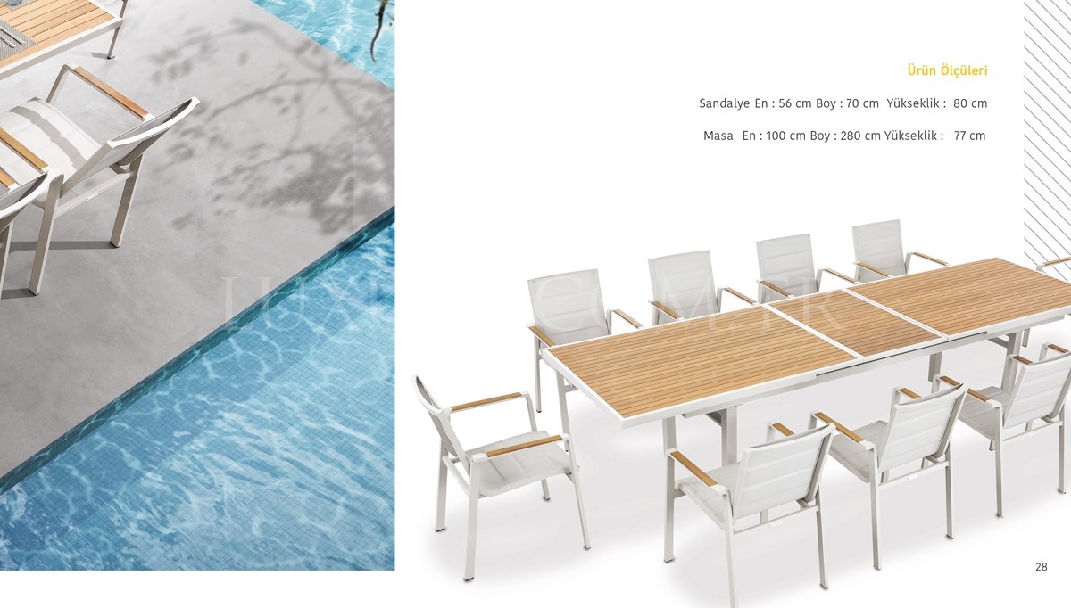 | Takım İçeriği | Bahçe Masa Takımı. 1 adet Yemek Masası ve 6 adet Sandalye'den oluşmaktadır. |