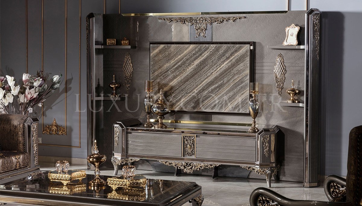 Rabesa Lüks TV Ünitesi, zarif ve avangarde tasarımıyla oturma odalarınıza sofistike bir hava katıyor. Modern çizgiler ve şık detayların mükemmel birleşimi, her açıdan dikkat çekici bir görünüm sağlar. Yüksek kaliteli malzemelerle üretilen bu TV ünitesi, geniş depolama alanı ile medya ekipmanlarınızı düzenli tutarken, şık tasarımıyla yaşam alanınıza lüks bir dokunuş ekler. Rabesa Lüks TV Ünitesi, estetik ve işlevselliği mükemmel bir şekilde bir araya getirerek, Luxury Line Mobilya’nın zarafetini ve kalitesini evinize taşır. Bu zarif ünitenin her detayı, oturma odalarınıza prestij ve zarafet kazandıracak.