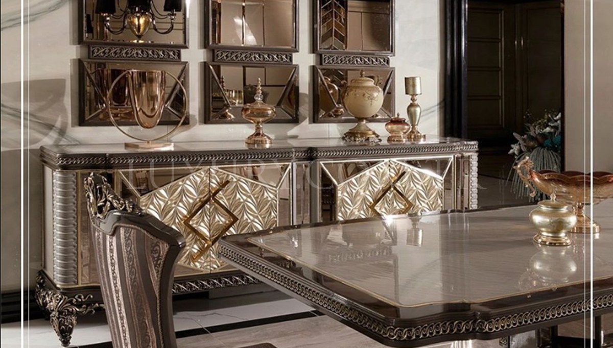 | Takım İçeriği | Konsol, Ayna (3 Adet), Yemek Masası, 6 Adet Sandalye'den oluşmaktadır. TV Ünitesi, Vitrin Ve Dresuar Fiyata dahil değildir.Opsiyonel olarak satışa sunulmaktadır. | |